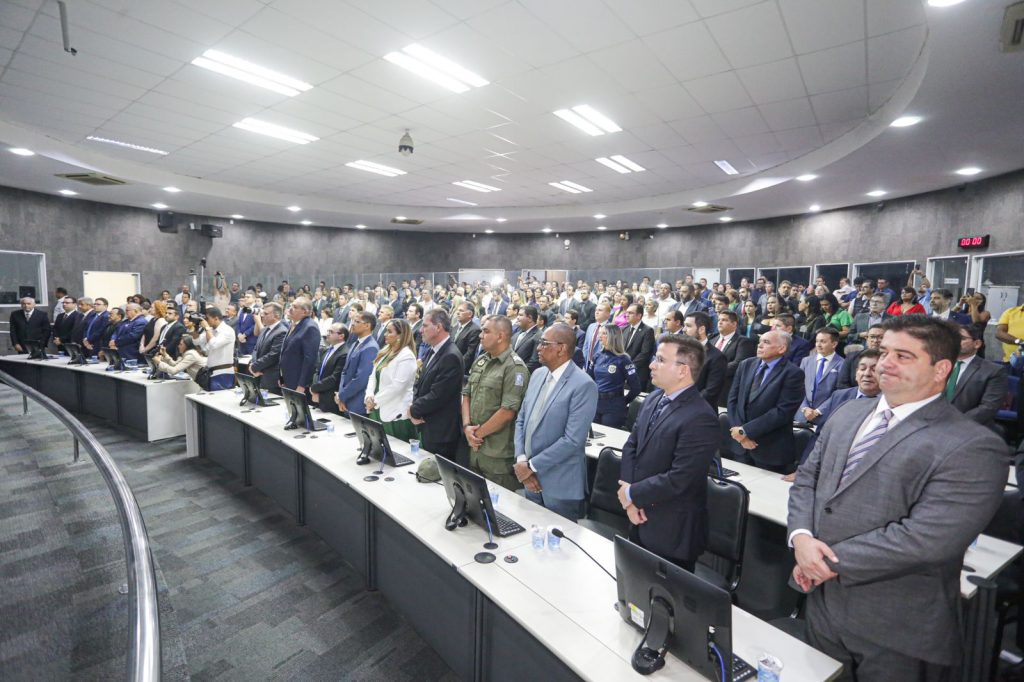 A solenidade foi iniciada com a composição da Mesa de Honra formada pelo presidente da Casa, vereador Enzo Samuel, o Prefeito de Teresina Dr. Pessoa, o vice-presidente da ALEPI Deputado Estadual Evaldo Gomes, a Procurada da Mulher da CMT vereadora Pollyanna Rocha, O Subprocurador-geral de Justiça Institucional Hugo Cardoso, a Defensora Pública Sheila de Andrade, o Secretário de Estado de Governo Marcelo Nunes Nolleto, o Presidente da Caixa de Assistência dos Advogados do Piauí – CAAPI Talmy Tércio Ribeiro da Silva Júnior Neto. Em seguida, foi executado o Hino de Teresina.